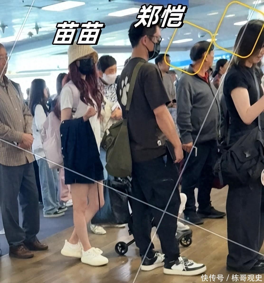 偶遇者暗示郑恺和苗苗是去韩国旅游,正在列队坐飞机。